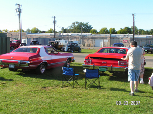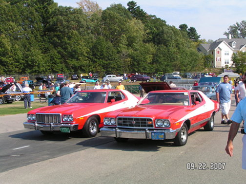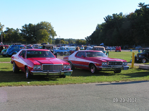 HERE ARE SOME PICTURES FROM THE NATIONAL STREET ROD ASSOCIATION "NORTH EAST NATIONALS" , SEPTEMBER 2007, IN ESSEX JUNCTION, VERMONT. THE WEATHER WAS IDEAL AND THERE WERE HOT RODS AND CLASSICS FROM ALL OVER THE USA AND CANADA. RUPERT E. AND I HAD A MINI STARSKY TORINO REUNION (CAN'T GET MORE MINI THAN 2 CARS). PERHAPS NEXT YEAR, SOME OF THE FELLOWS FROM NEW YORK/NEW JERSEY/PA AREA CAN ATTEND.